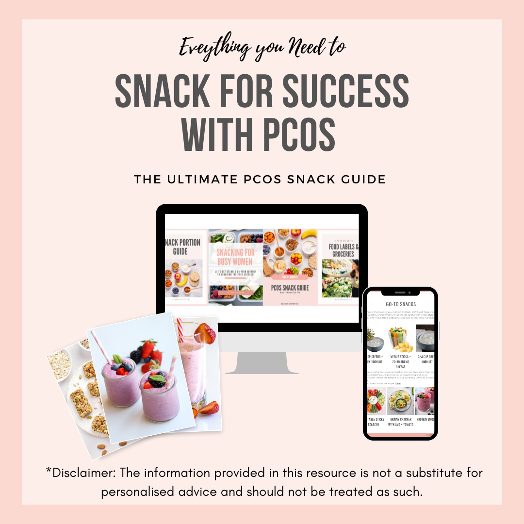 100+ delicious recipes/snack ideas to help you nourish your PCOS and over 25 pages of information to help you feel confident in your snacking including:
